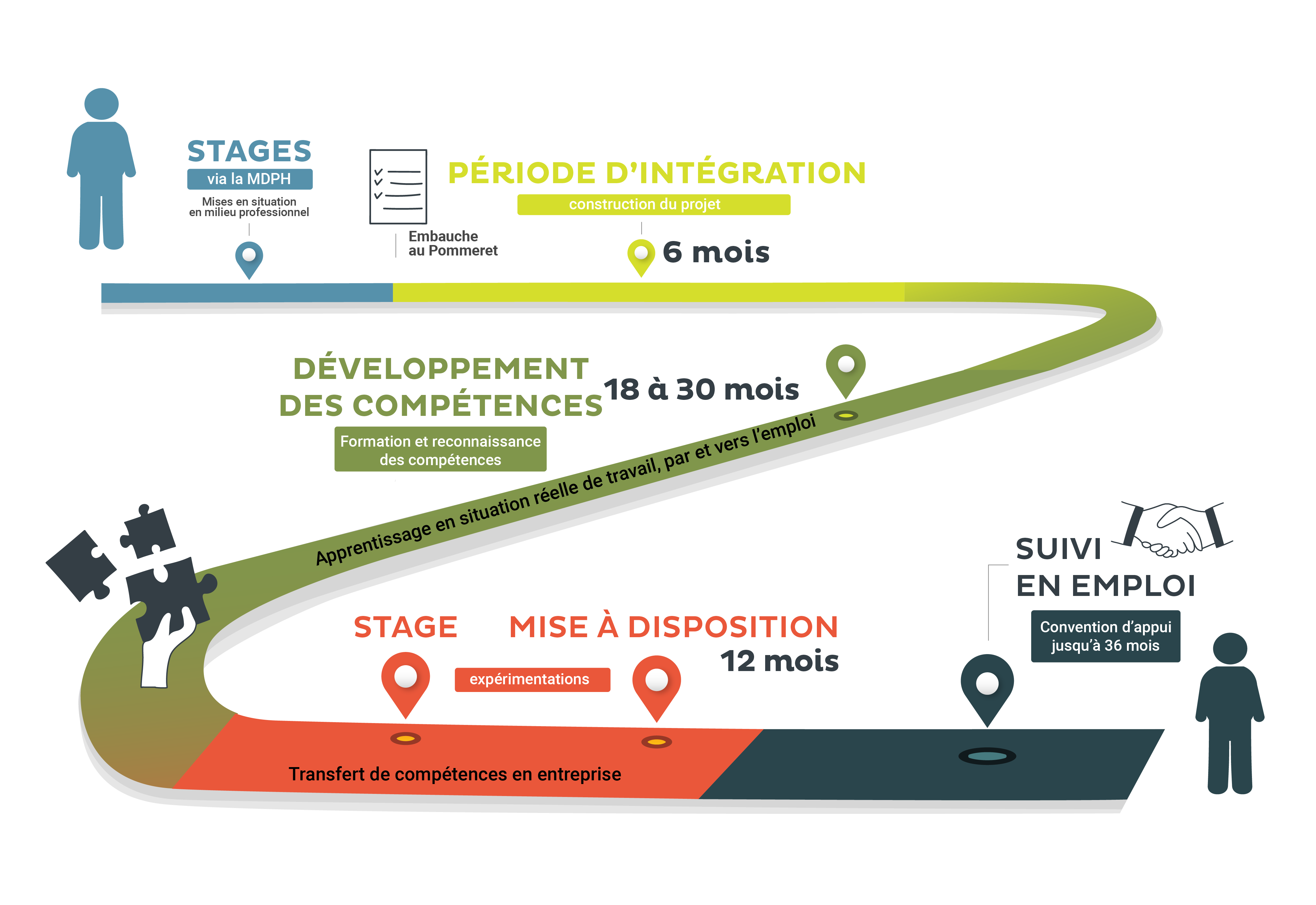 Afin de garantir le bon déroulement de l’accompagnement en ESAT de transition, l’APH le Pommeret a mis en place un parcours bien spécifique.